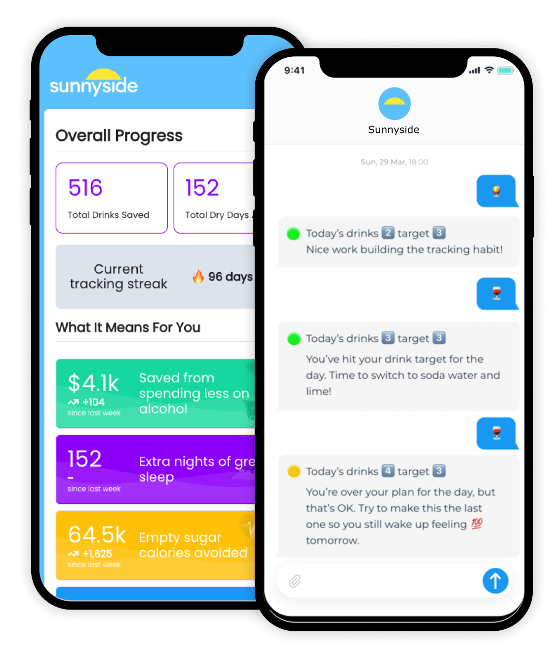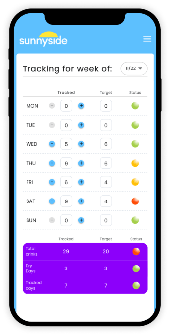 For $99 per year, Sunnyside’s app features daily drink tracking, SMS reminders to keep you on track of your goals, a personalized one-on-one coaching program and a community chat section to share struggles/wins with other members. The cost is on par with Reframe, a similar app that costs $8.33 monthly or $100 annually.