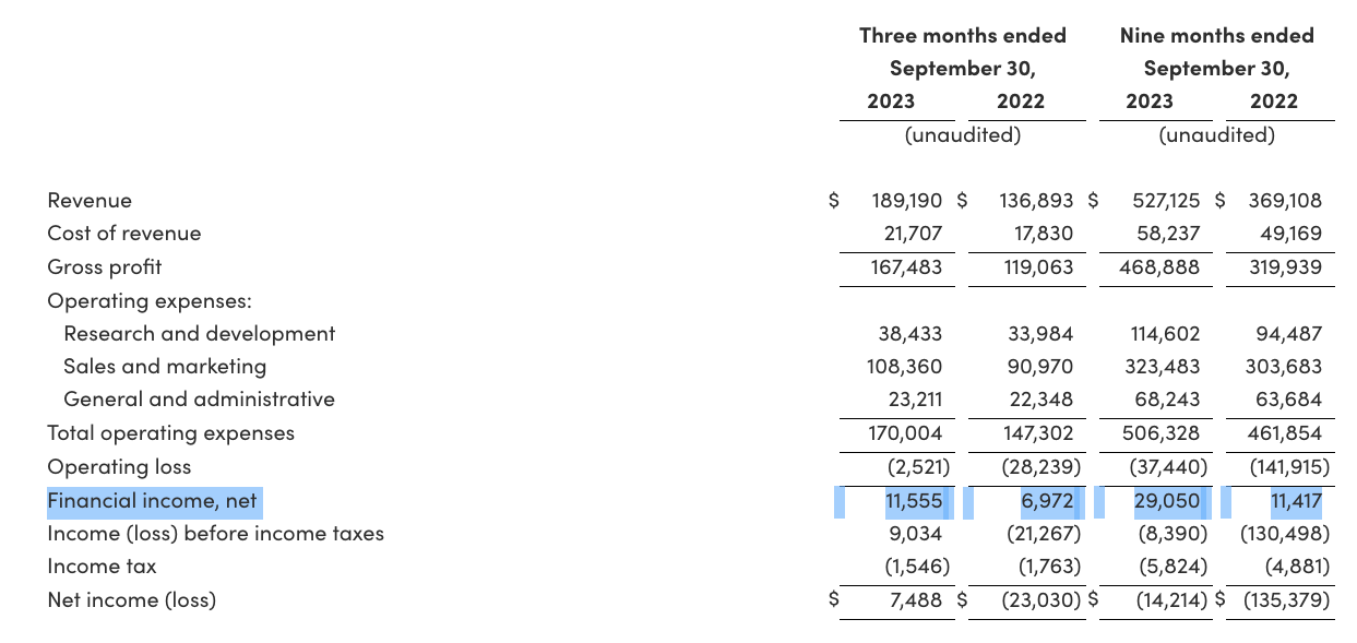 The funny thing about Monday.com’s results is that it managed to turn an operating loss into net income. How did it manage the feat? Rising interest-based incomes: