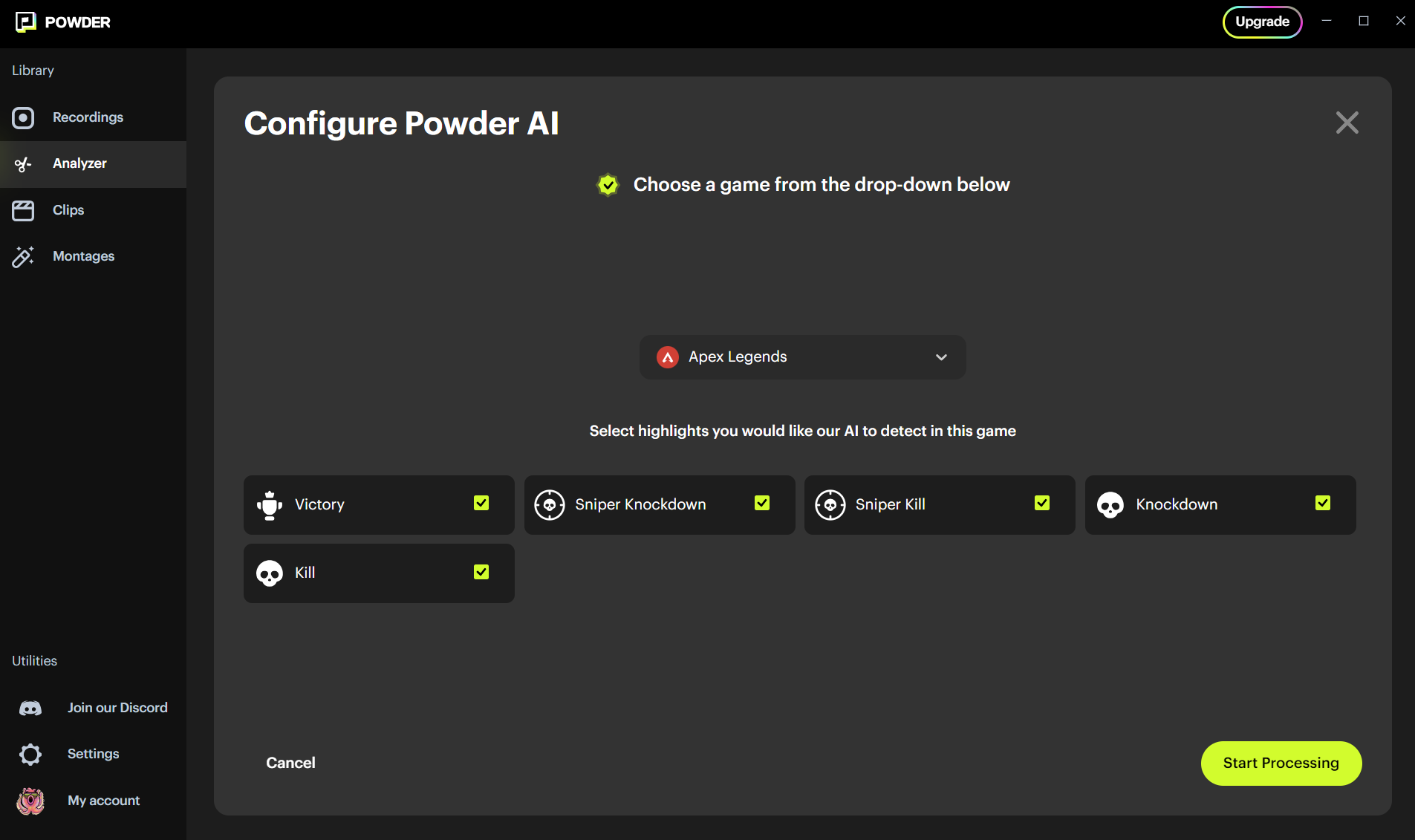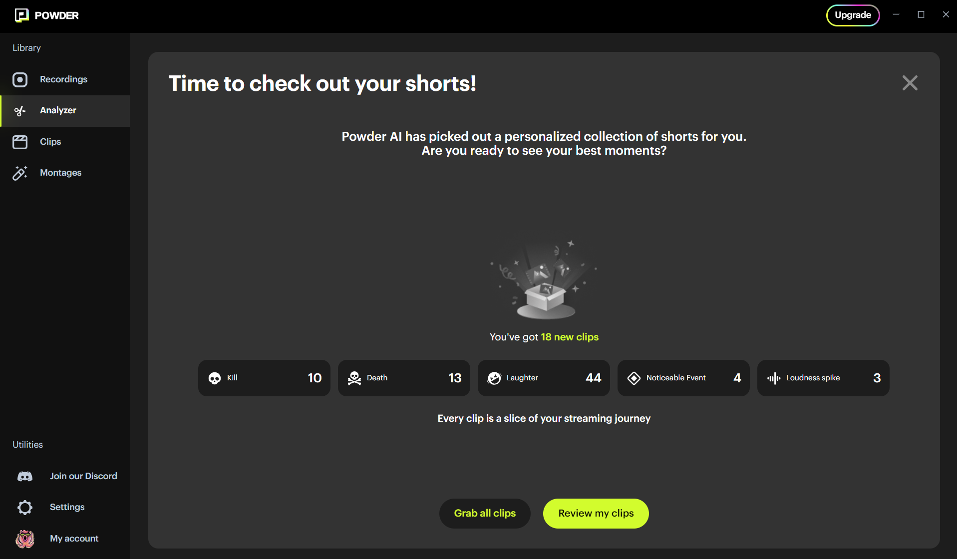 All the models work similarly; the AI scans the stream recordings — whether from Twitch, YouTube or an MP4 file — and finds spikes in activity, including victories, assists, kills and other performance-based in-game moments. Powder takes these highlights and creates short montages for creators to upload to social media.