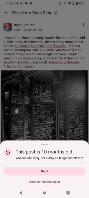 The feature will additionally remind users when they’re replying to a post that’s over three months old, as these are no longer considered part of an active discussion. Users’ older posts are often surfaced by mistake, prompting replies, because someone had searched a particular topic and came across a post in the search results.