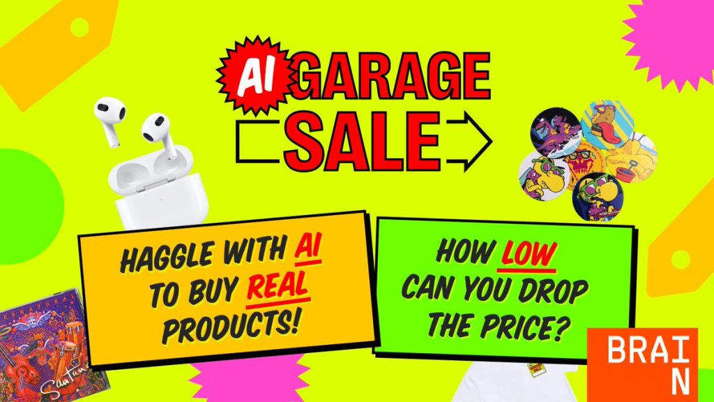 AI Garage Sale is a surprisingly functional internet gag from Brain, a small Los Angeles-based art studio. Along the lines of a MSCHF project, AI Garage Sale is fully operable: you can actually haggle with a cast of AIs for deals on an eclectic mix of items you’d find at a garage sale, like a 1997 Tamagotchi, a CD of “Smooth” by Santana featuring Rob Thomas and a collection of 200 Pogs. If you get the AI to make you a good offer, you can actually buy the product. The AI is allowed to sell items at any price, so in theory, it’s possible to get a serious bargain. To sweeten the deal, there’s some big ticket items like a brand new PS5, AirPods and Olivia Rodrigo tickets. And then there’s just some flat out weird ones, like a 10 foot tall inflatable tube man.