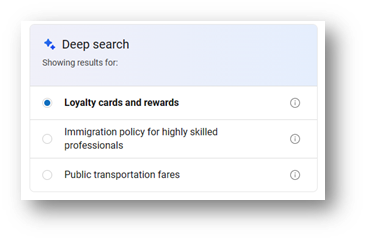 Sticking with the same loyalty points query example above, Deep Search may also search for things like “loyalty card programs Japan,” “best loyalty cards for travelers in Japan,” “comparison of loyalty programs by category in Japan,” “redeeming loyalty cards in Japan” and “managing loyalty points withe phone apps.”