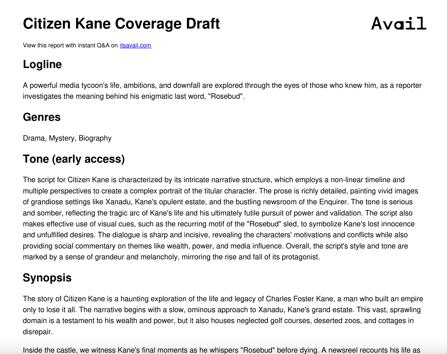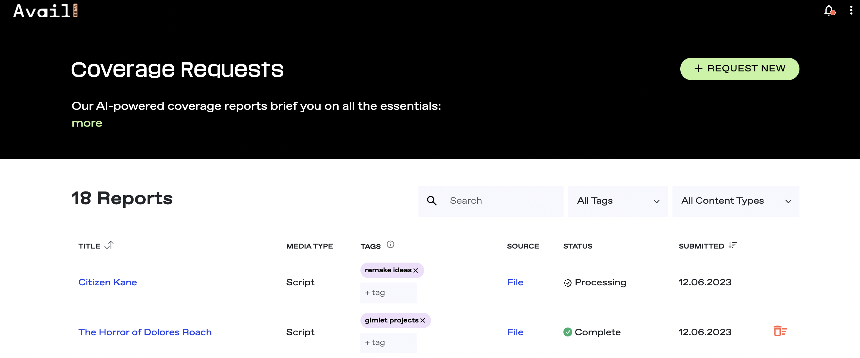 Avail is tackling one of the many time-consuming tasks in film and TV development: script coverage.