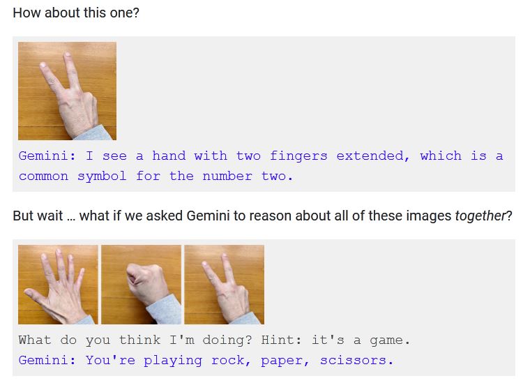 For instance, at 2:45 in the video, a hand is shown silently making a series of gestures. Gemini quickly responds, “I know what you’re doing! You’re playing Rock, Paper, Scissors!”
