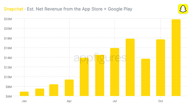 That puts Snapchat+ far ahead of X Premium, the subscription product formerly known as Twitter Blue. In November, X saw its highest month of in-app revenue purchase to date with $6.2 million in consumer spending, but it was still less than a third of what Snapchat+ is bringing in.