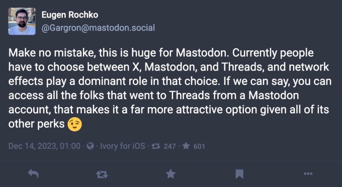 In addition, he points out that having access to all Threads users from a Mastodon account makes the app more attractive, considering its other perks.