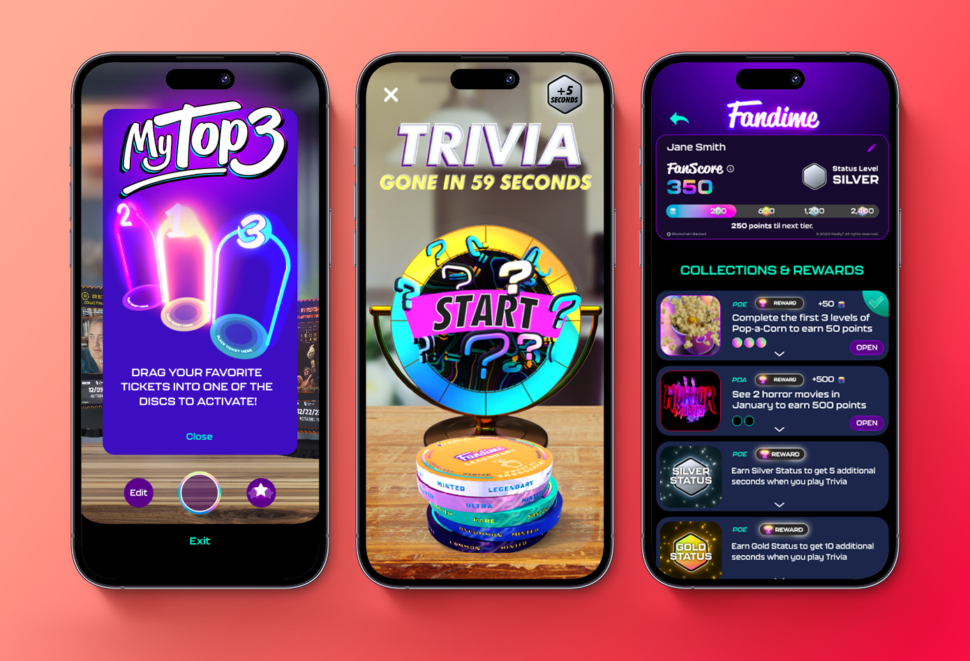 There are three ways to earn Fandime tokens — attending movie theaters and events, buying merchandise and interacting with Really’s AR experiences like weekly trivia, scavenger hunts and a “Pop-a-Corn” game that involves throwing kernels into a popcorn bucket. Users can also purchase a Fandime directly in the Really app (available on iOS and Android devices).