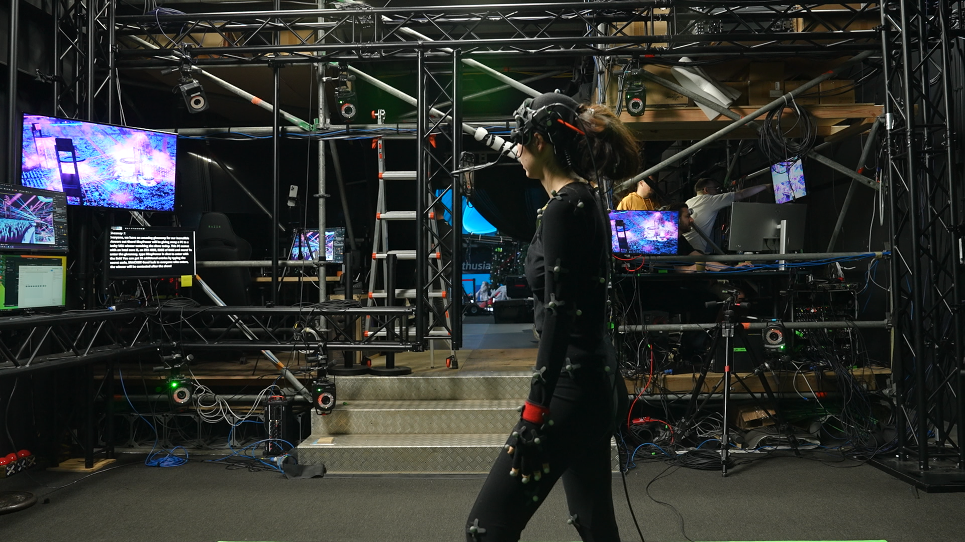 Like many VTubers, Filian is fiercely protective of her anonymity and did not want to be photographed, so a crew member stood in for behind-the-scenes photos of the motion capture getup. Although everyone involved in the production promised to maintain her anonymity, Filian said it was “really unusual” for her to perform as her VTuber persona in front of actual people.