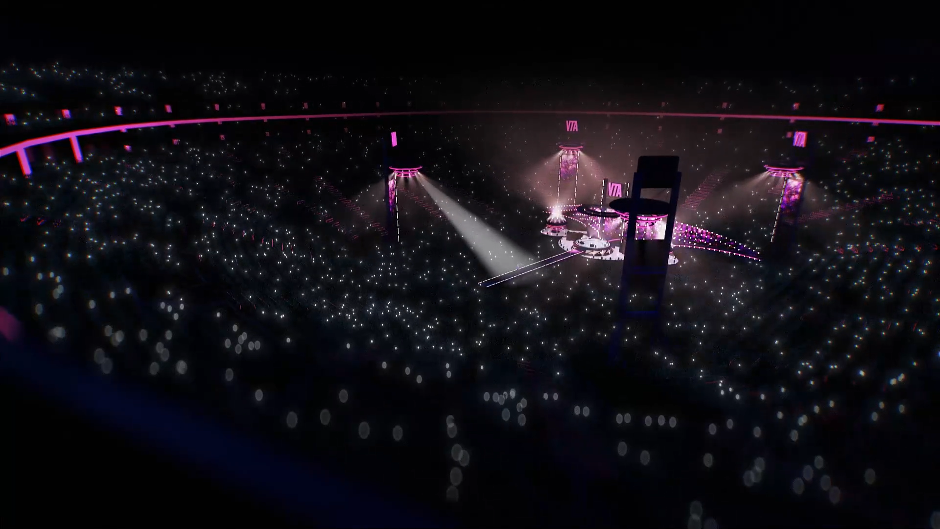The stream depicted a vast arena, but Filian’s avatar was essentially confined to a smaller circular stage surrounded by screens, which was a virtually constructed version of WePlay’s physical production stage. In real life, camera operators controlled three cameras linked to virtual angles, so that each physical pan, tilt and focus pull was reflected in the virtual broadcast. The physical operators could switch between multiple different angles in the stadium using iPads connected to the cameras, so that the production appeared to use at least a dozen cameras instead of just three. The physical lights on the stage were connected to corresponding virtual lights, so that WePlay could control the stadium’s spotlights by activating the real ones. WePlay also connected Resolume, a software for live event visuals, to the virtual venue to control the graphics that played on the VR stage’s screens.