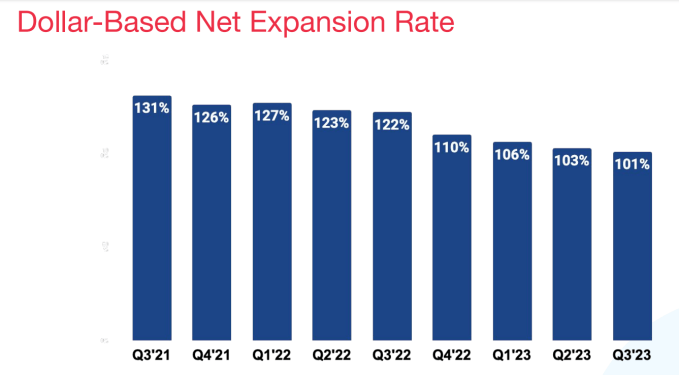 We can see that Twilio’s revenue growth has slowed in line with its dollar-based net expansion rate. In essence, Twilio’s rapid growth was heavily predicated on its customer base spending more on its products over time, but when that well ran dry — similar to how nearly every software company has been dealing with customers tightening spending — the company’s growth rate fell.