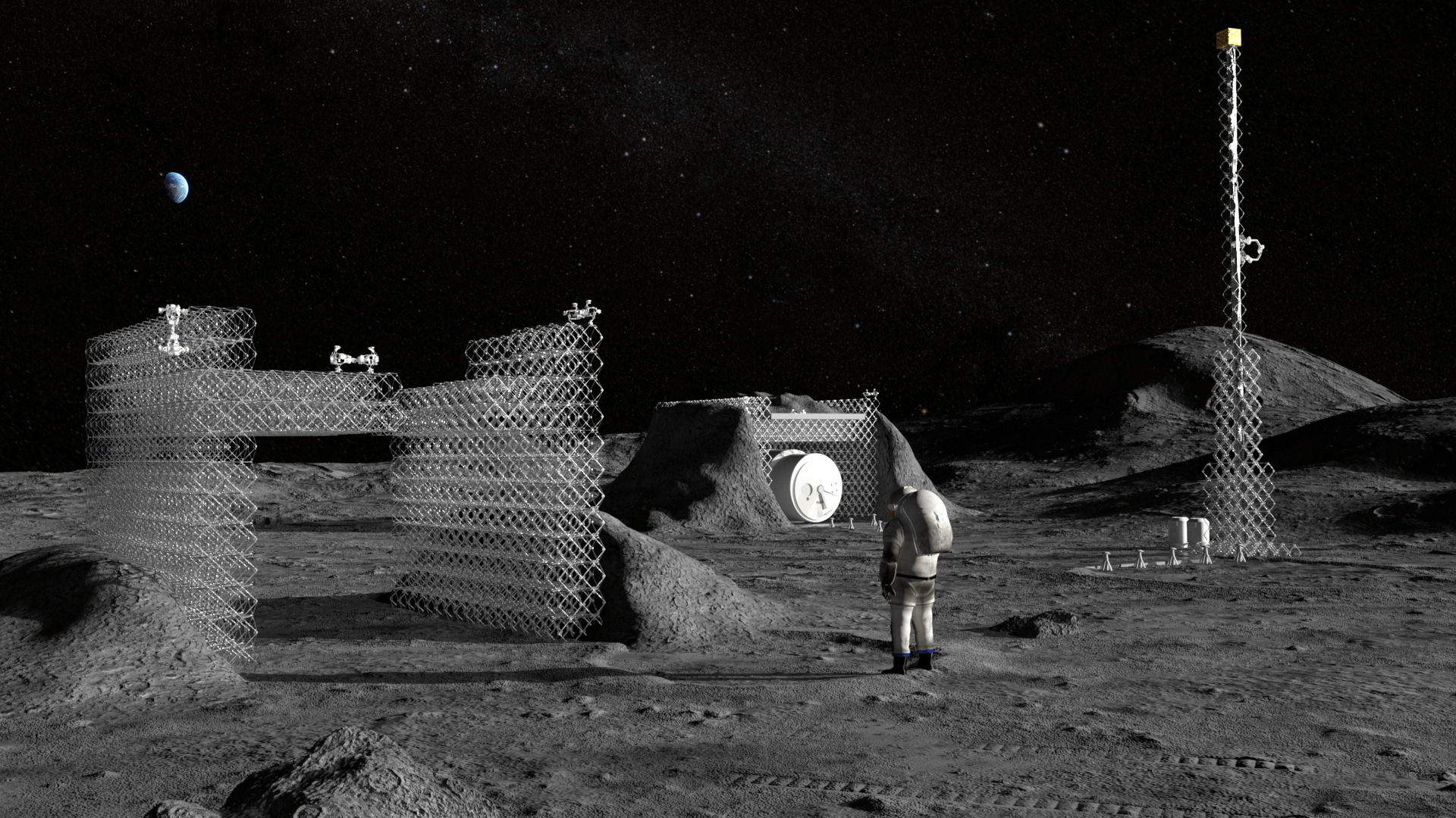 “We think this type of construction is particularly suited to long duration and/or very large infrastructure, including habitats, instrumentation or any other infrastructure on orbit or the surface of the moon (utility towers, vehicle landing facilities),” said co-author Kenneth Cheung. “For us, the structures and all of the robotic systems are resources that can be optimized over space and time. It looks like there will always be situations where the optimal thing is to leave just structure in place (and perhaps visit to inspect it with a robot periodically), so we started with that.”