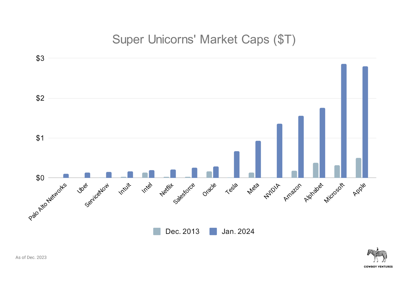 Superunicorns have superpowers that help create and/or disrupt entire categories — like Netflix (worth more than Comcast, Paramount, and Warner Bros. combined) and Tesla (worth more than the next five largest public automakers combined).