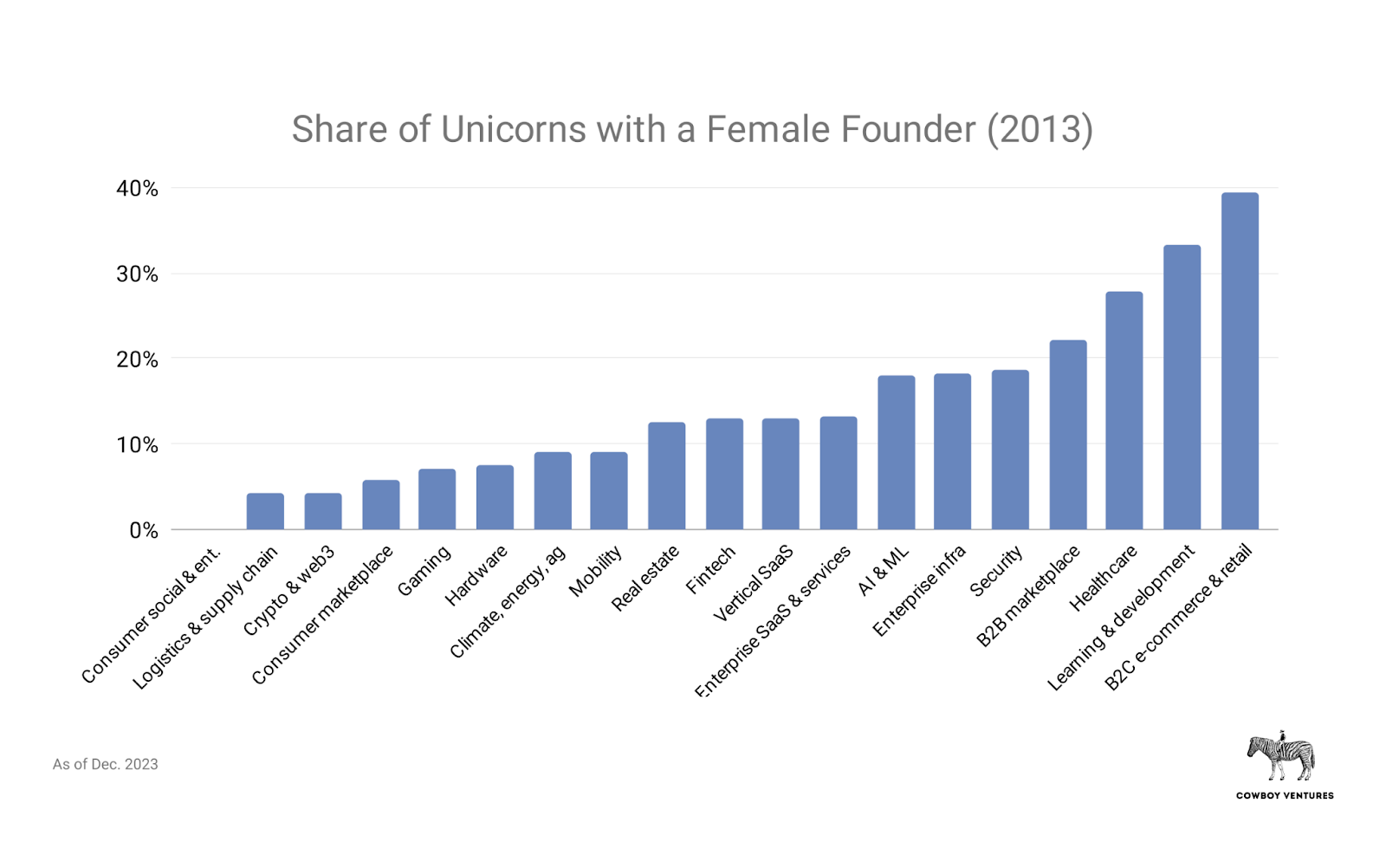 - There was very little diversity: no female CEOs, and just 5% of unicorns had a female co-founder.