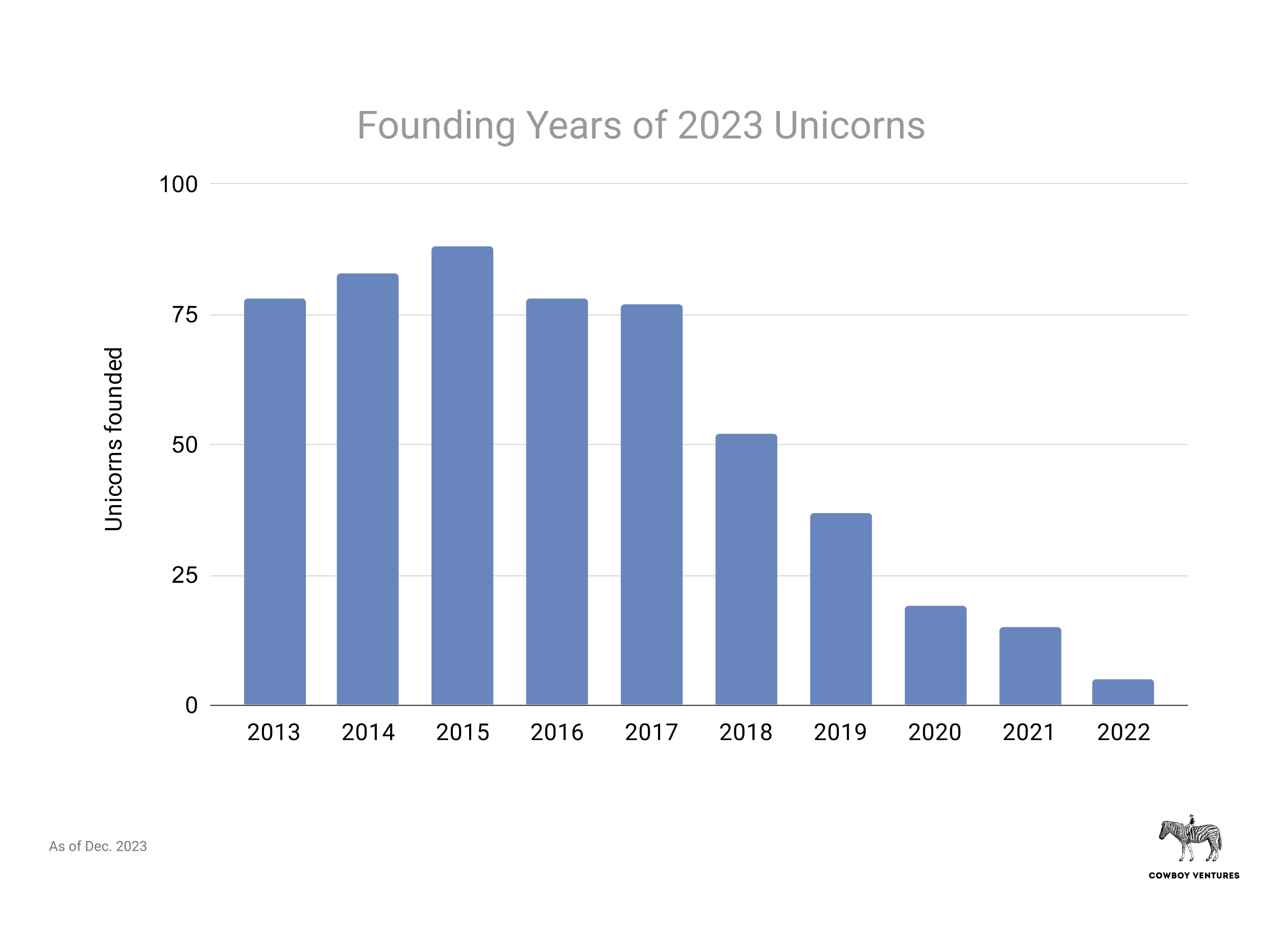 In 2013, Cowboy Ventures had just gotten started. To inform our investment strategy, we assembled and studied a dataset of U.S.-based, VC-backed startups that had grown to be worth more than $1 billion within 10 years, using the term “unicorn” as a shorthand to capture how magical these companies seemed.