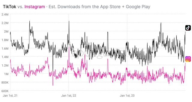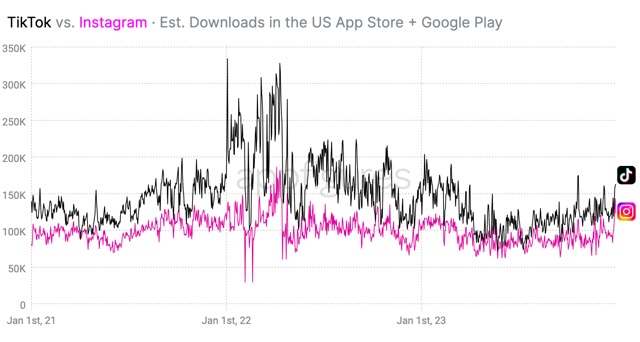 Data from another firm, Appfigures, also supports this conclusion but adds that, although TikTok’s revenue has been growing, its downloads have been stagnant or dropping more than growing — a trend that’s been going on for over a year now, including both globally and in the U.S.