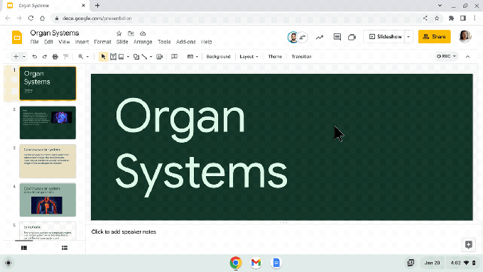 Plus, they can use the speaker spotlight feature in Slides to create a lesson with narration along with the slide deck.