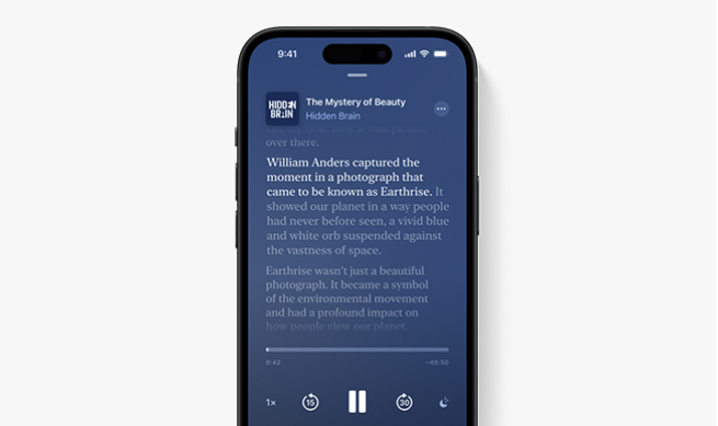Similar to how lyrics work in Apple Music, users can view a live text version of an episode, and the words are highlighted as they listen. Users can also tap anywhere in the transcript to play the episode at that specific spot. To pull up the transcript, users click on the new “quote” icon at the bottom of the Now Playing screen. In addition, there’s a way to view the transcript without listening by holding down on the episode details page and selecting “View Transcript.”
