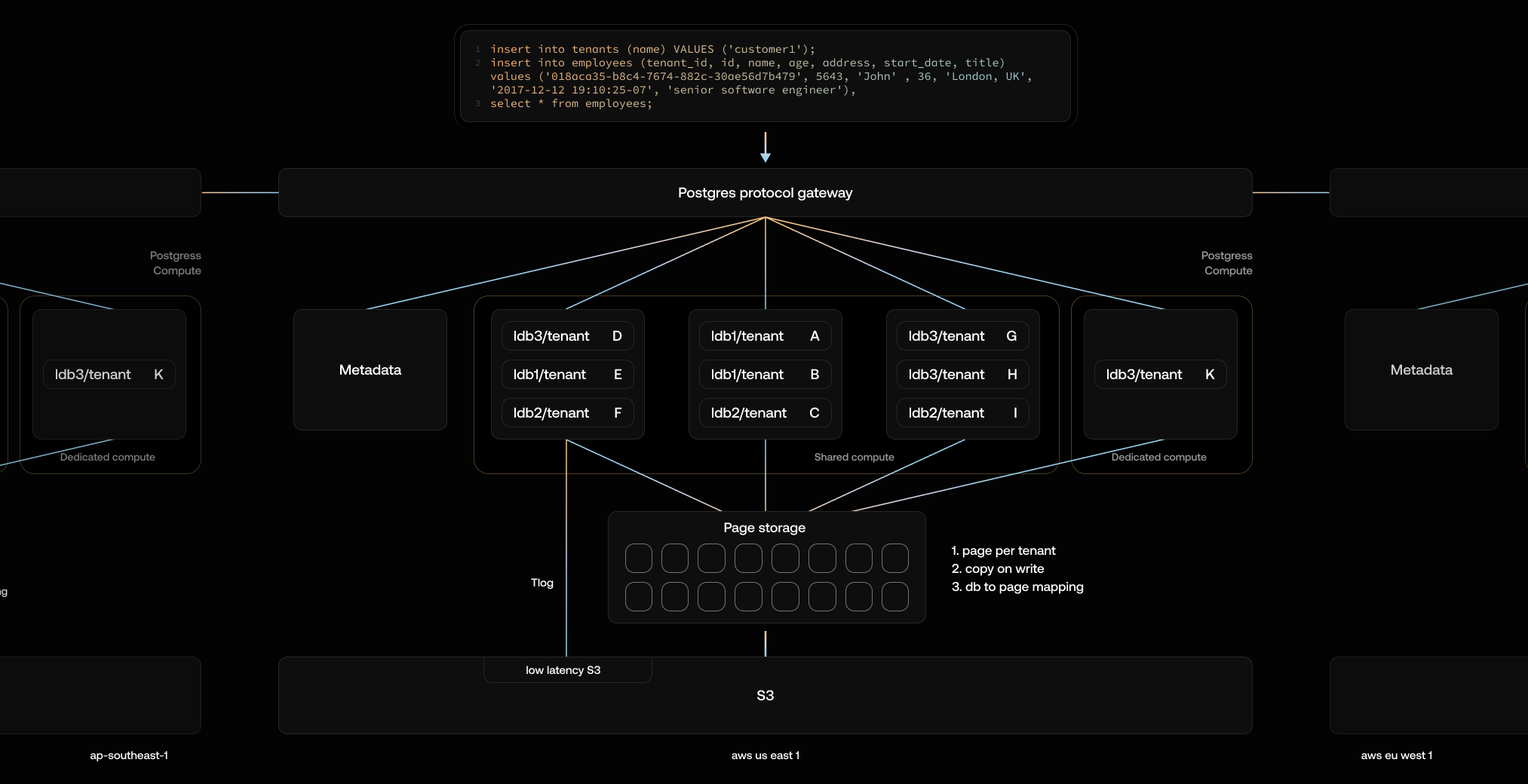 Traditionally, the team argued, solving problems around data and database management was always an application problem rather than a database problem. Nile is turning this on its head by making multi-tenancy a core feature of its Postgres solution and by separating the data layer from the compute layer. That means users can connect a virtual tenant database either to a shared compute service or attach a dedicated compute node to it, for example. Developers just need to define which database the application needs to speak to and Nile then provides the isolation at the session and — coming soon — the connection level.