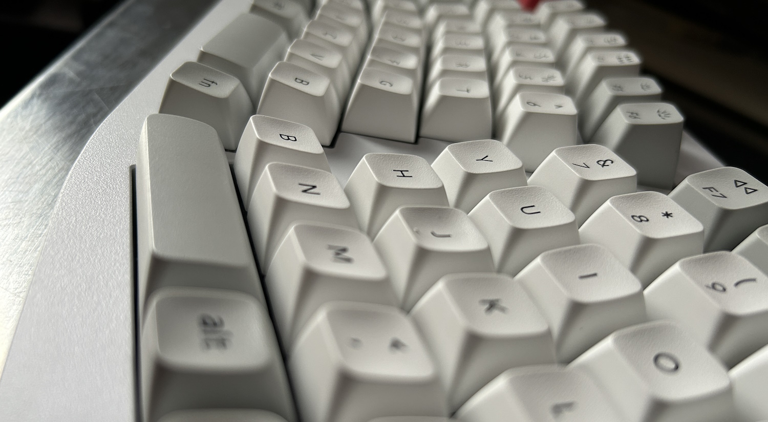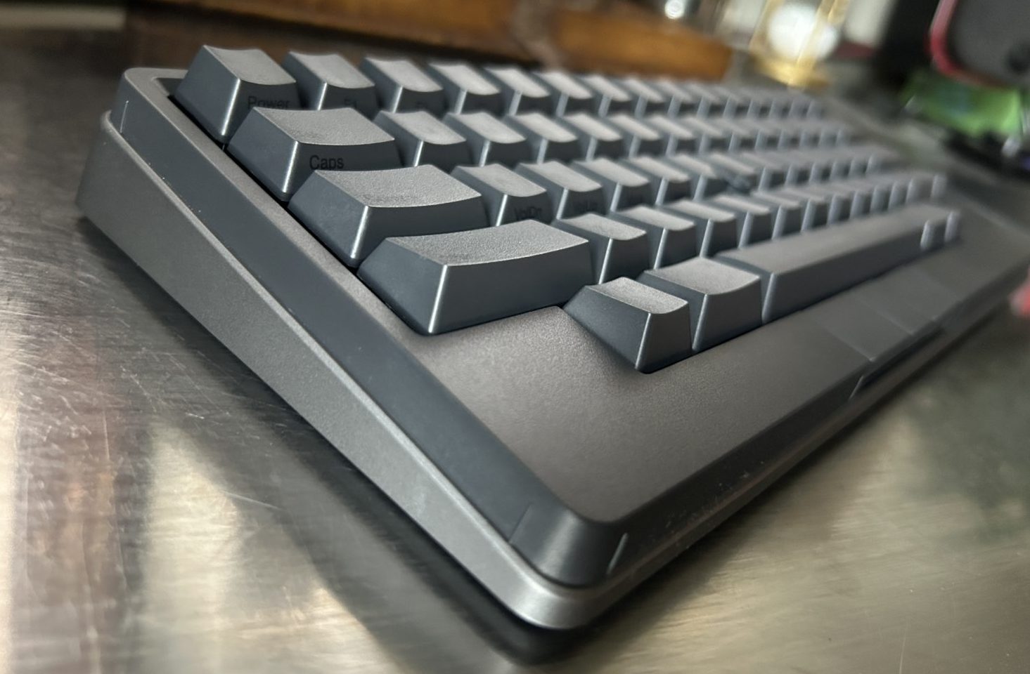 I can tell you it makes quite a difference, and anyone would agree in a few keystrokes. The quiet, medium actuation linear switches feel like they’re being pushed through a cloud, and are as close to silent as any mechanical keyboard I’ve used. That is to say, very quiet but for a sort of soft, rippling sound when you’re really going. It’s really very comfortable and my daily driver for now.