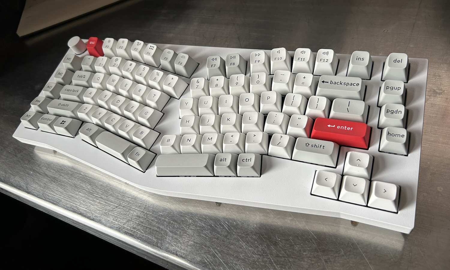 The layout also has a less pronounced tent, almost none at all in fact, which with the tilted key layout actually makes it seem like you’re twisting your wrists inward a bit. I didn’t expect that, but now I understand why the tenting built into the 80 makes it seem flat when it isn’t.