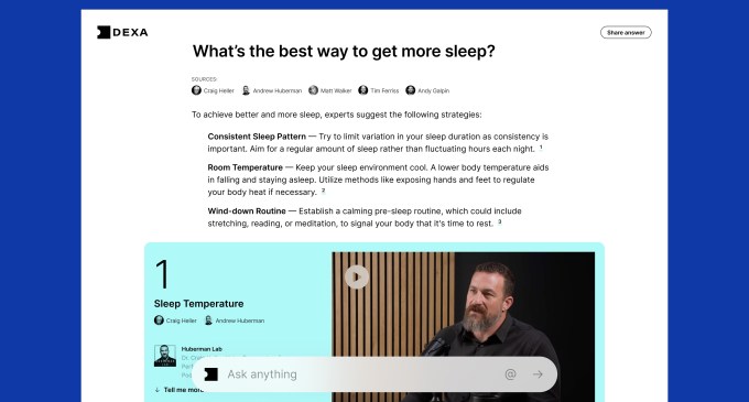 “A platform’s success or failure will hinge on the trust it builds with users and content partners. Dexa’s approach puts trust first — user trust that answers to their questions come from human experts, and partner trust that their content will be showcased, not just used for training data or anonymized summaries,” he said.