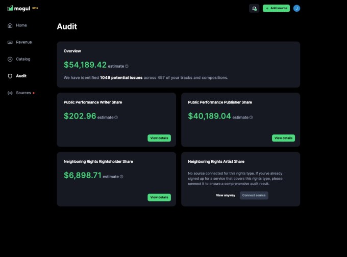 Mogul is exploring different ways to start earning revenue. For starters, it is introducing a SaaS model that gives different levels of auditing to startups along with features like royalty anomaly detection for enterprise customers.