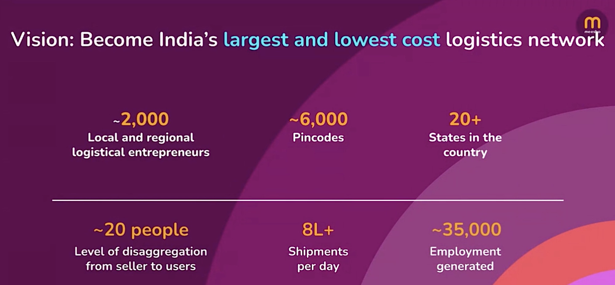 “Valmo is about getting organized smaller players to play a part in the larger e-commerce system,” said Sourabh Pandey, CXO of Fulfilment & Experience at Meesho, in an interview. The smaller players amount to only about 20% of the e-commerce deliveries today. “With Valmo as a network, we believe we can take that share to 45%,” he said.