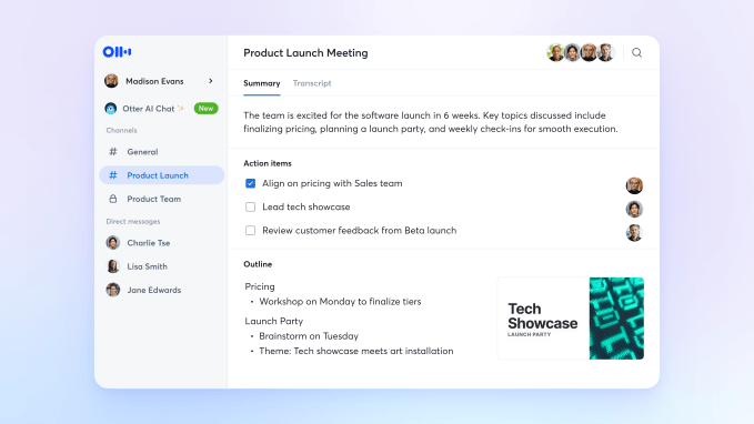 Now, users will be able to read an AI-generated summary of what was covered in that meeting, including a paragraph followed by a list of action items. Otter’s customers can also now interact with an AI chatbot where they can ask questions about what took place in the past meeting or others.
