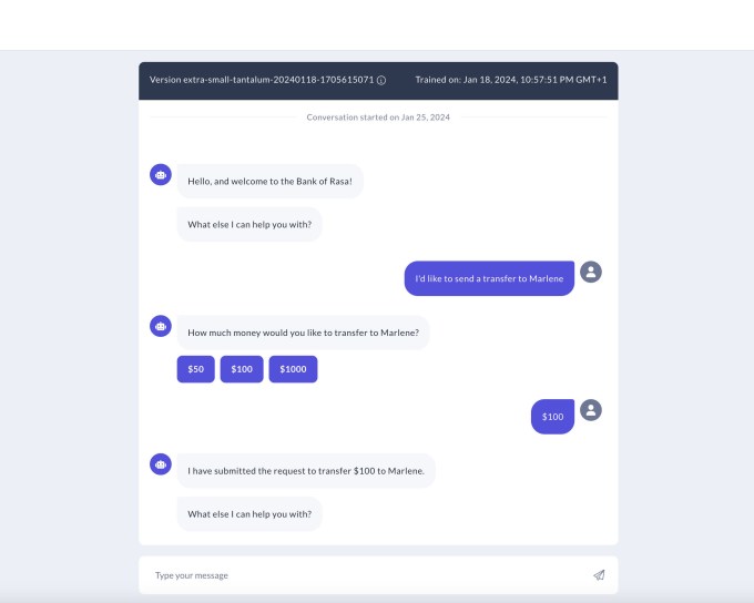 The move seems to have paid off for Rasa, who says it “roughly doubled” its annual recurring revenue (ARR) in 2023 compared to the year prior. That traction helped it land $30 million in Series C funding co-led by StepStone Group and PayPal Ventures, participation from existing backers Andreessen Horowitz (a16z), Accel and Basis Set Ventures. The company declined to reveal valuation, saying only it was an up round from its $26 million Series B raise.