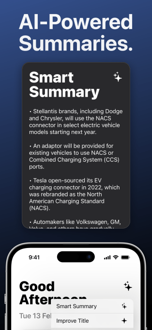 As you browse the sections, you can opt to improve the titles of news posts using AI — a feature designed to help combat clickbait titles — as well as tap on the “Smart Summary” option to have a ChatGPT-style quick summary of the article’s main points. Mehboob says he’s using OpenAI’s GPT to handle the AI components.