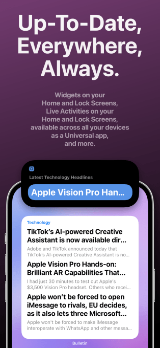 Bulletin was created by developer Shihab Mehboob, a prolific indie developer who recently sold his Mastodon client Mammoth to Mozilla. Notes Mehboob, the app works across Apple devices, including iPhone, iPad, Mac, Apple Watch and even Apple Vision Pro. (An Apple TV version is also coming shortly after launch.)