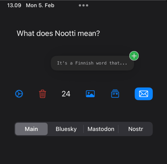 Kajander said he also hasn’t made a decision about supporting other networks, like Threads, or even if that will be required, once it becomes a federated app using the ActivityPub protocol. In the meantime, you can cross-post to any other app with the share button within Nootti instead.