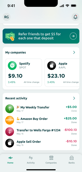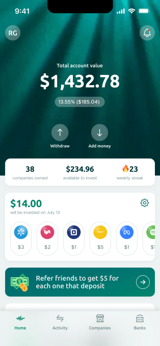 By default, Grifin automatically invests $1 per transaction. For instance, when you buy a cup of coffee at Starbucks, the app withdraws $1 from your bank account, and you get $1 of SBUX stock. You can also manually increase the investment amount to a maximum of $99.