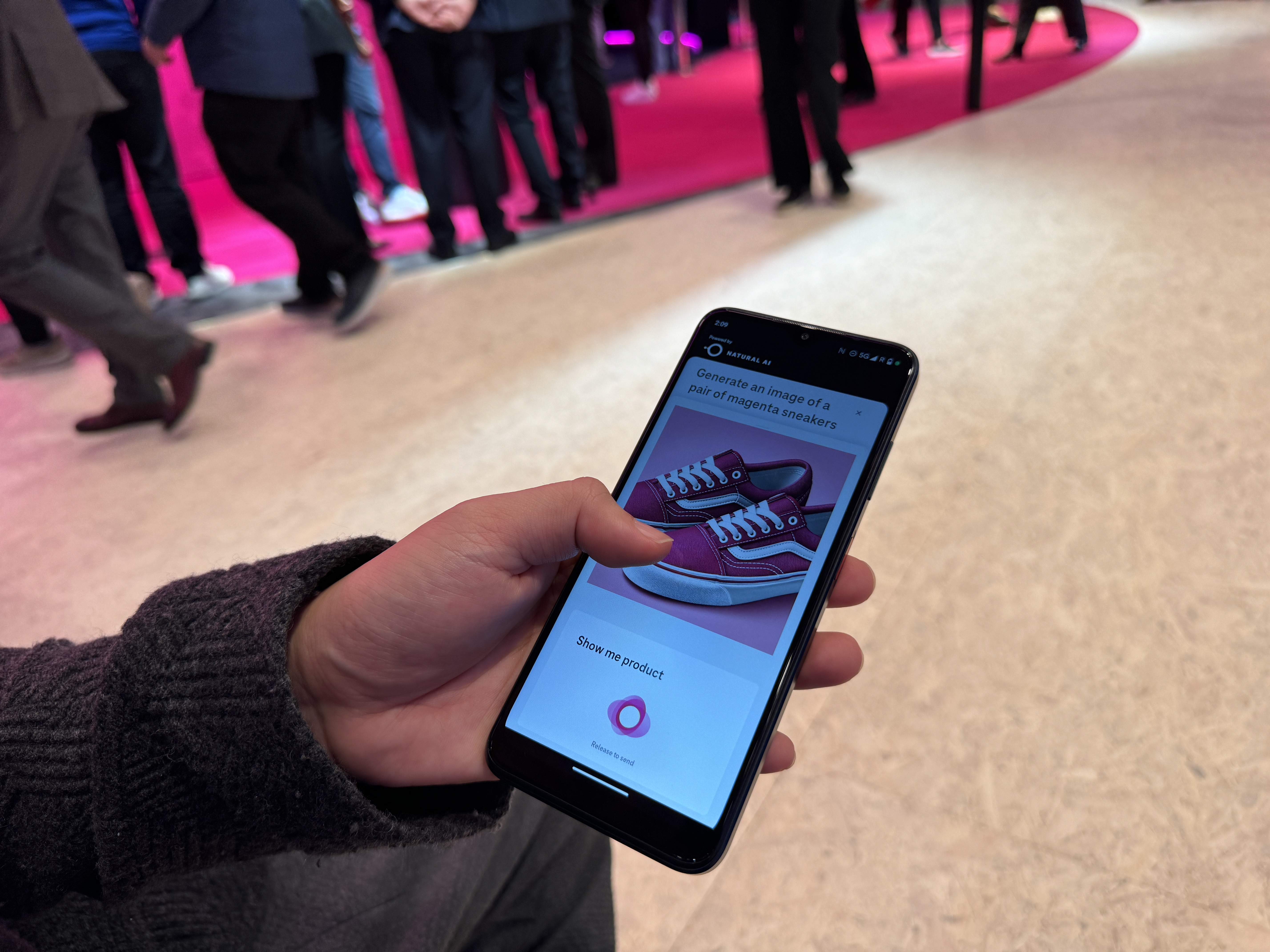 The camera will also play an important role in search. One example we discussed is taking a photo of a menu in a foreign country. Not only will it translate (à la Google Lens), it will also offer food recommendations based on your tastes. Yue also briefly demonstrated the system’s image generation with a simple request befitting our surroundings: make magenta sneakers. It did so quickly, with the only real bottleneck being convention center connection speeds (ironic, given the settings).