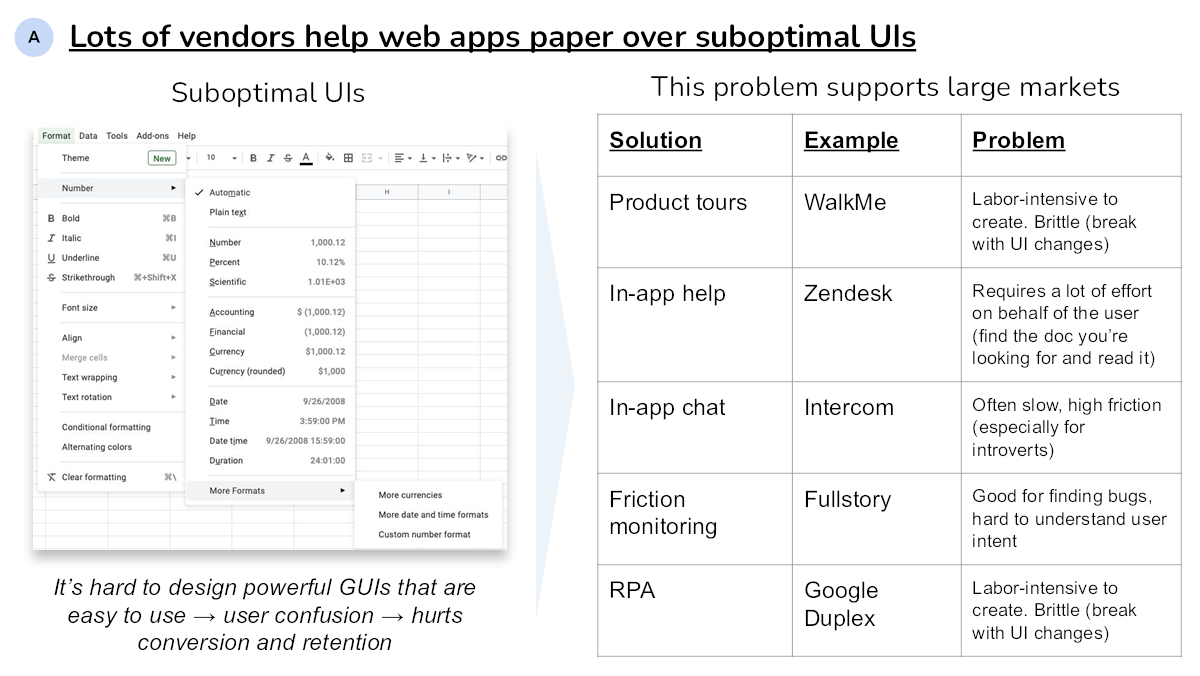 A lot of founders get stumped trying to express what the company is doing and who it is doing it for. That makes sense: Of course a startup is complicated and full of nuance. But investors don’t need that level of in-the-weeds precision, especially not the first time they look at a startup. CommandBar’s second slide cuts through the temptation of complexity, offering up the following: