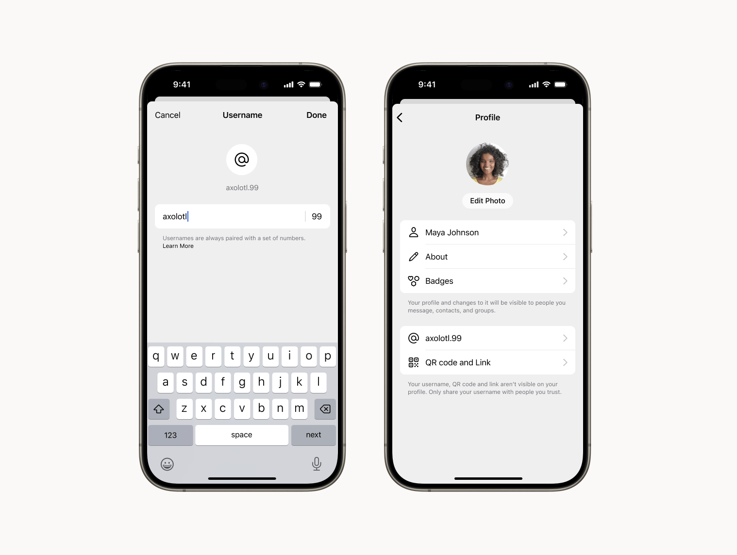 “A request we got frequently from journalists in conflict zones, and from human rights workers, was like: Hey, we love it, but the phone number is a real issue for us. We need to be able to speak with people without sharing this information. We need to be in groups of strangers where we’re not afraid that they can scrape that. And we need to be able to initiate conversations with others without sharing our phone number, because again, that, that’s my biometrics, that’s everything else, and that can leak a significant amount of information.”
