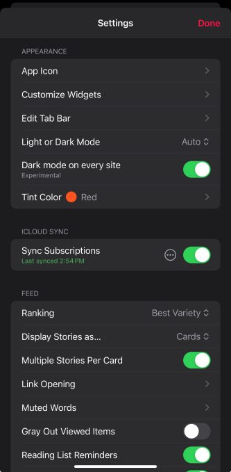 The home feed shows a mix of posts from the sources you follow. The posts, which appear in a card format by default, aren’t in chronological order. Unlike other RSS readers, there is no read count to get through as the idea is to discover content rather than reaching “Inbox Zero” for a reader. But if you feel the urge to catch up to the latest posts, you can pin a “Latest” tab to the bottom bar. Alternatively, you can change the feed ranking from “Best Variety” to “Chronological.”