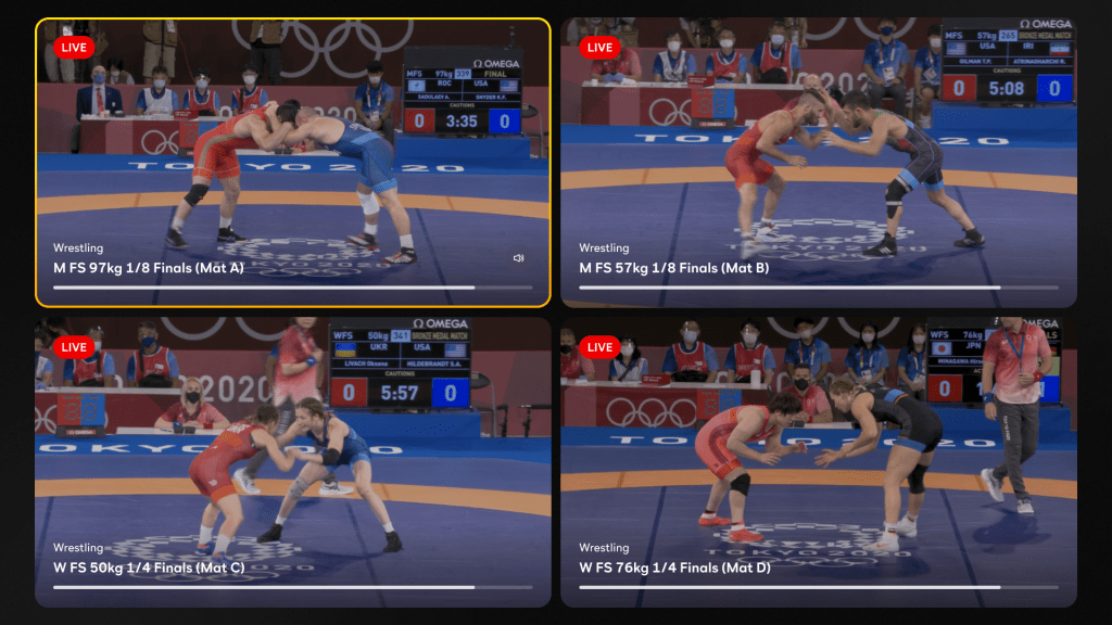 Peacock also hopes to stand out among its competitors by offering two multiview options: “Discovery Multiview,” which gives fans a four-screen overview of the live events currently happening, and a more traditional multiview experience where viewers can choose which four matches they want to watch (this second option is only available for Olympic sports with multiple simultaneous streams, such as soccer, wrestling and track and field.) Both options are customizable, meaning viewers can move around the screens and seamlessly switch between audio feeds.