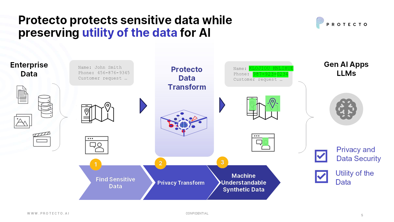 In an era where data is king and its volume and complexity are exploding, Protecto aims to eliminate the long-standing dilemma businesses face between leveraging AI’s power while ensuring data privacy. As the adoption of generative AI tools like ChatGPT skyrockets, wayward data becomes easier to find, process and do naughty things with. Protecto’s APIs are designed to protect sensitive data across the AI life cycle while maintaining its utility.