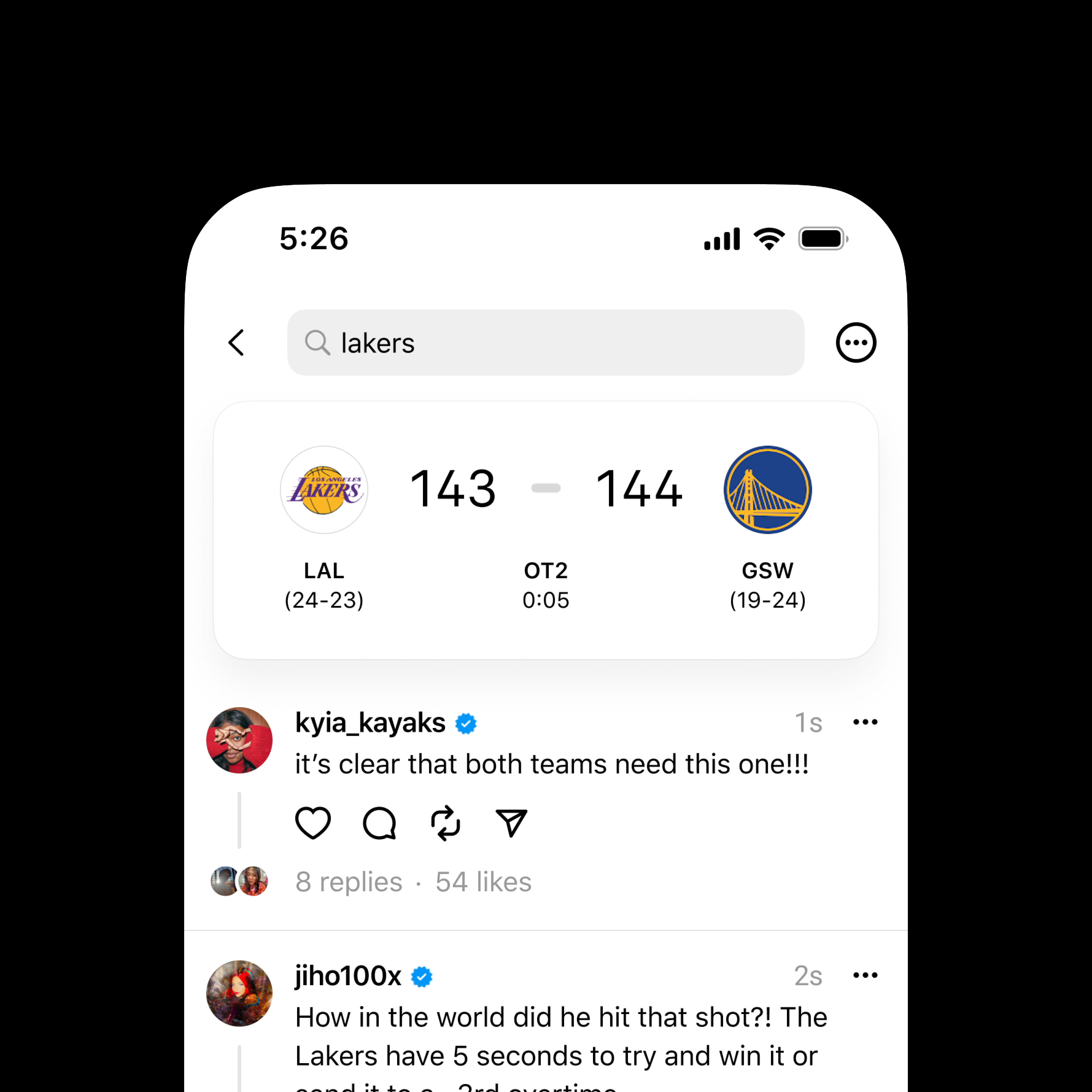 Within one day of a game, you can search for it on Threads to see the game’s start time. During the game, you can search for it while it’s happening to see the current score. After a game has ended, you can search for it to see the final score.