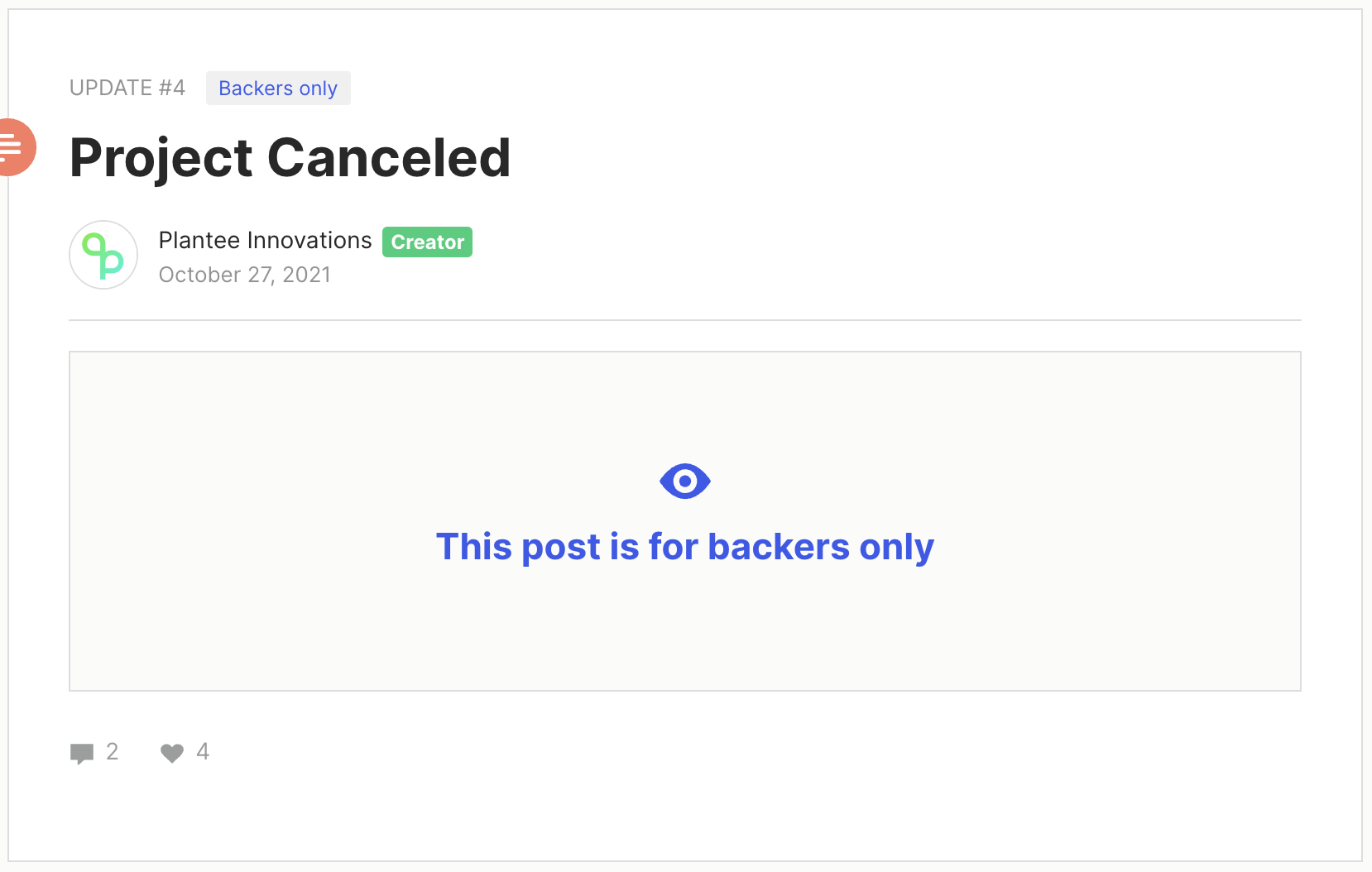 Plantee did, in fact, persuade 109 backers to pledge just over $100,000 for its product. The campaign was fully funded in less than eight hours but was canceled just under a month later.