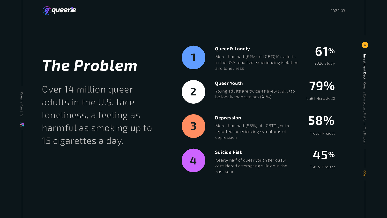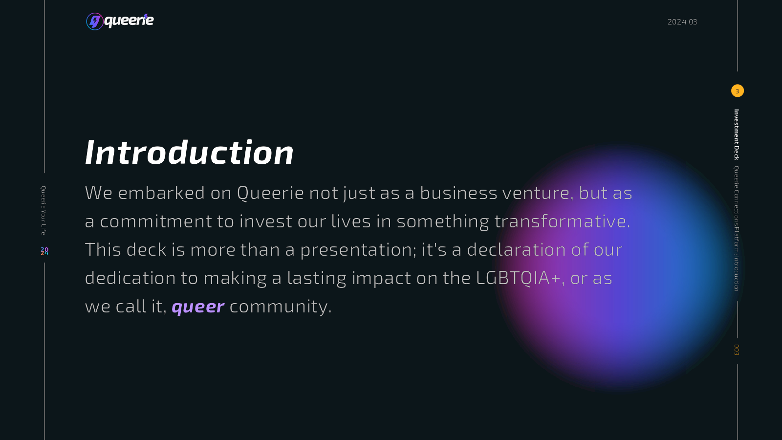 If you’re trying to make the world a better place, you’re probably going to attract mission-aligned investors. So why not spell out your mission front and center? It’s a powerful storytelling technique that’s well executed in the Queerie deck.