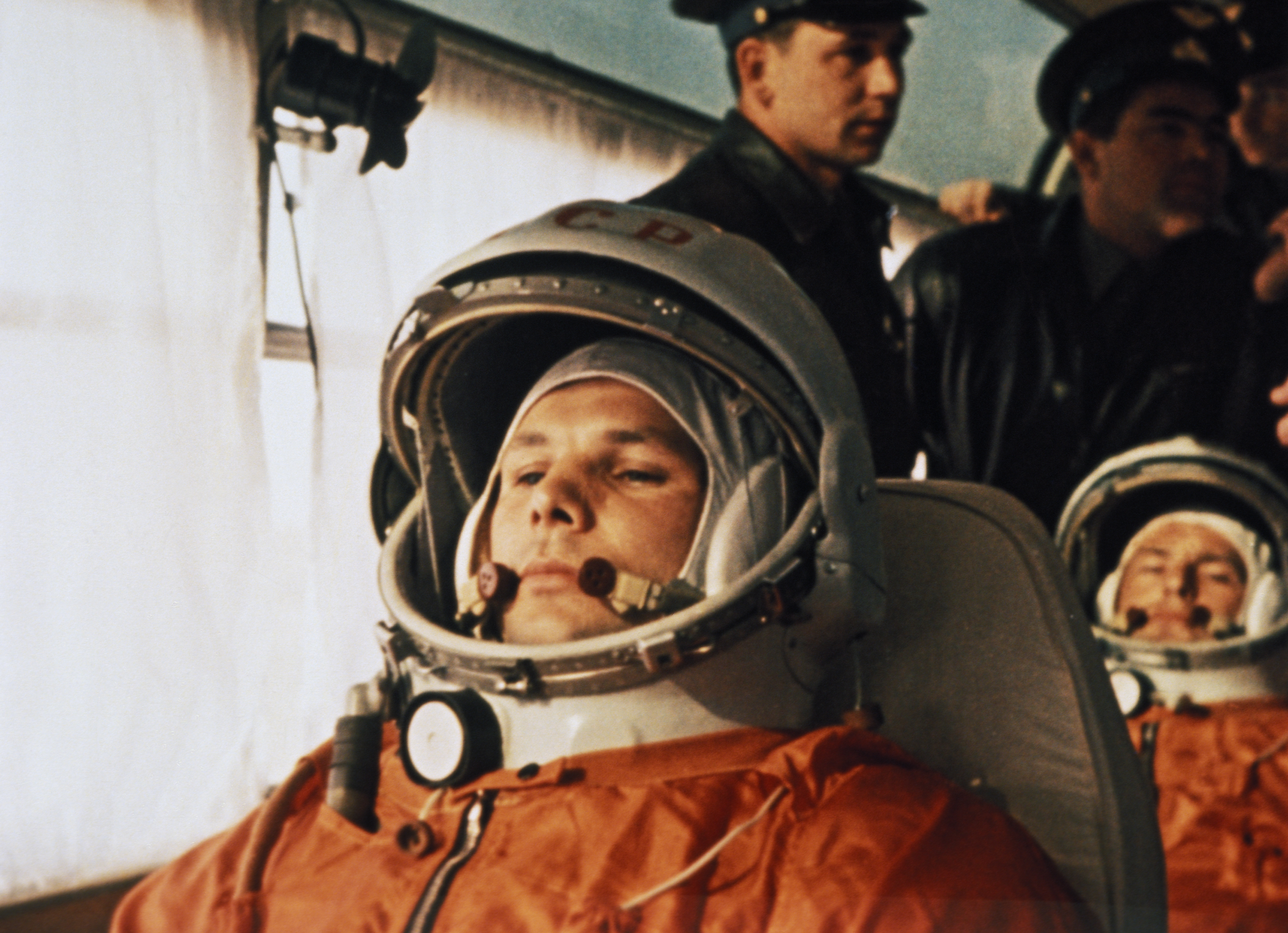 Russian cosmonaut Yuri Gagarin became the first man in space on April 12, 1961. From NASA: “His vehicle, Vostok 1 circled Earth at a speed of 27,400 kilometers per hour with the flight lasting 108 minutes. Vostok’s reentry was controlled by a computer. Unlike the early U.S. human spaceflight programs, Gagarin did not land inside of capsule. Instead, he ejected from the spacecraft and landed by parachute.”