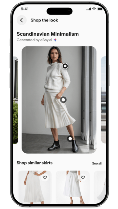 To do so, “shop the look” will include interactive hotspots that, when tapped, will reveal similar items and outfit inspirations, with the resulting looks including both preowned and luxury items that match the user’s personal style. The feature is powered by eBay.ai, and was developed in collaboration with the company’s Responsible AI team and RAI Principles, eBay notes.
