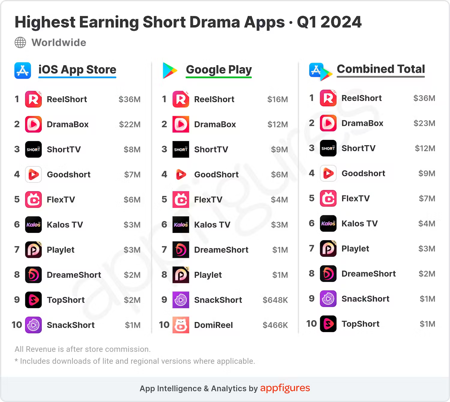 The No. 3 app ShortTV grossed $17 million globally in Q1, or 12% of the total.