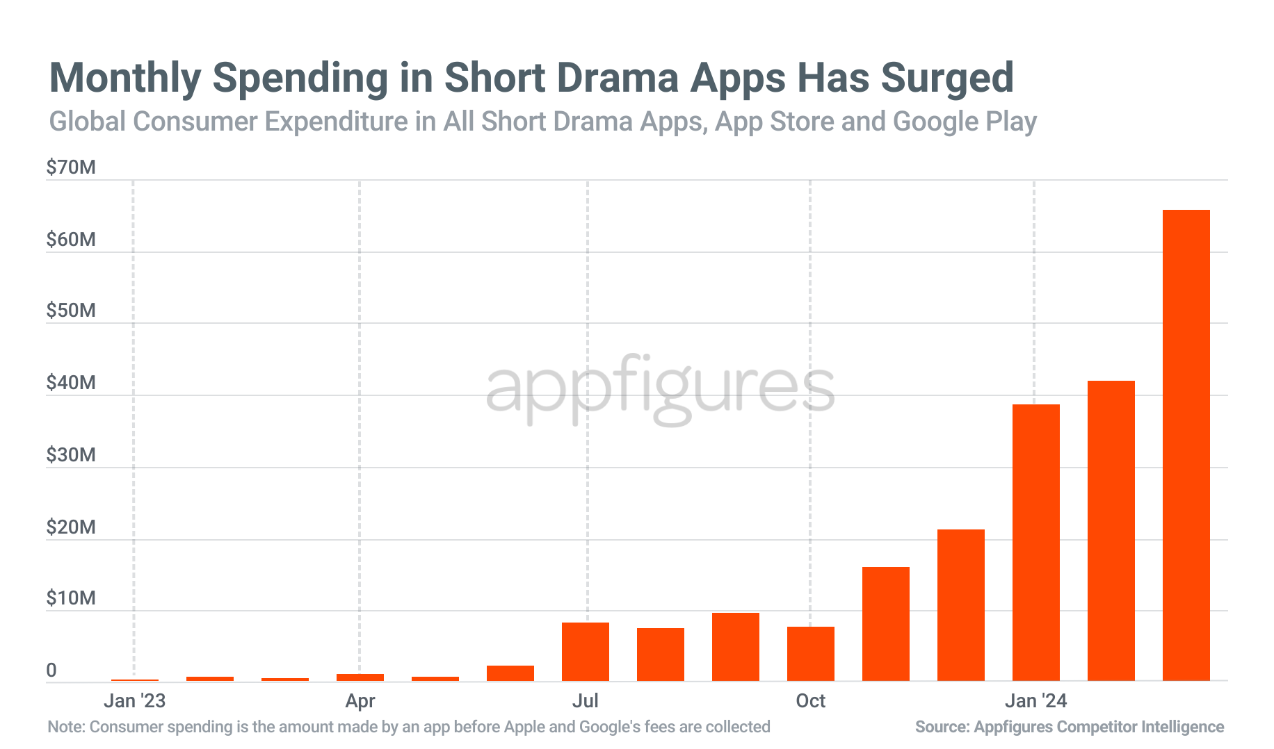 In March 2024 alone, consumers spent $65 million on short drama apps, a 10,500% increase from the $619,000 spent in March 2023.