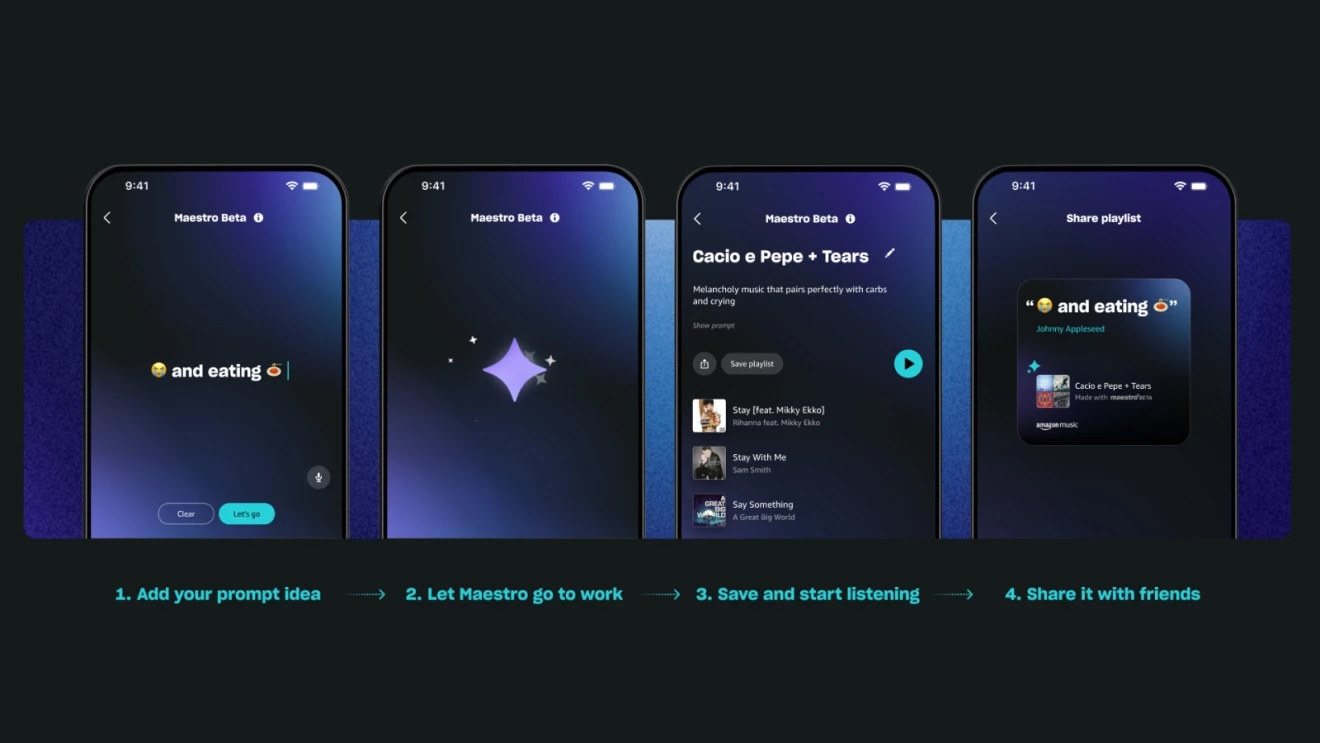 To access Maestro, users will need the latest version of the Amazon Music mobile app. They will have to tap on the option for Maestro on their home screen. They may also see the option to use Maestro when they tap on the plus sign to create a new playlist. From there, users can either talk or write out their playlist prompt idea, then tap “Let’s go!” to start streaming it. The playlist can also be saved and shared with friends.
