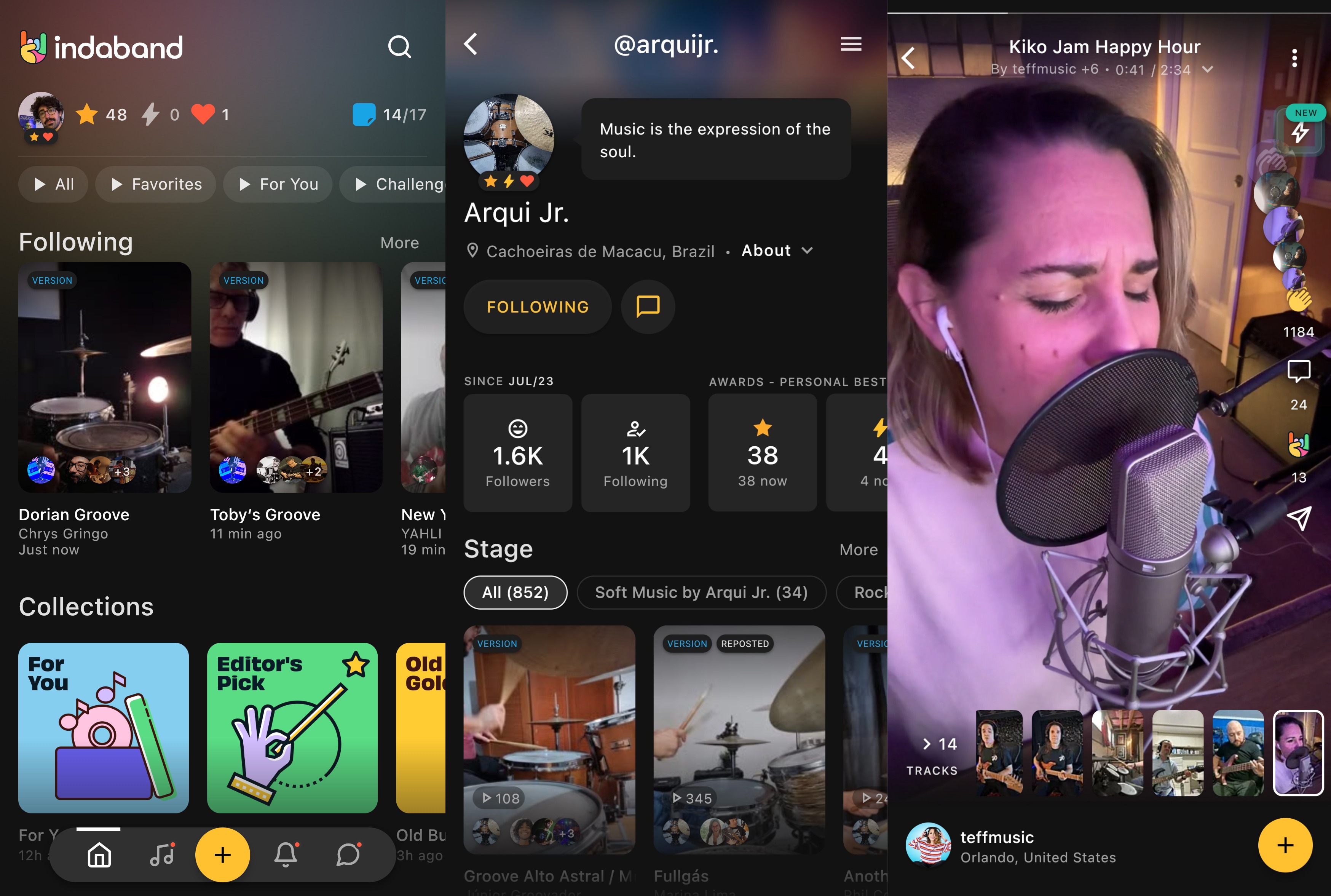 Indaband helps users discover songs and jam sessions with daily curated playlists that dive into different genres, like rock, jazz, hip-hop and EDM. Users can like and comment on videos and repost them to their followers.