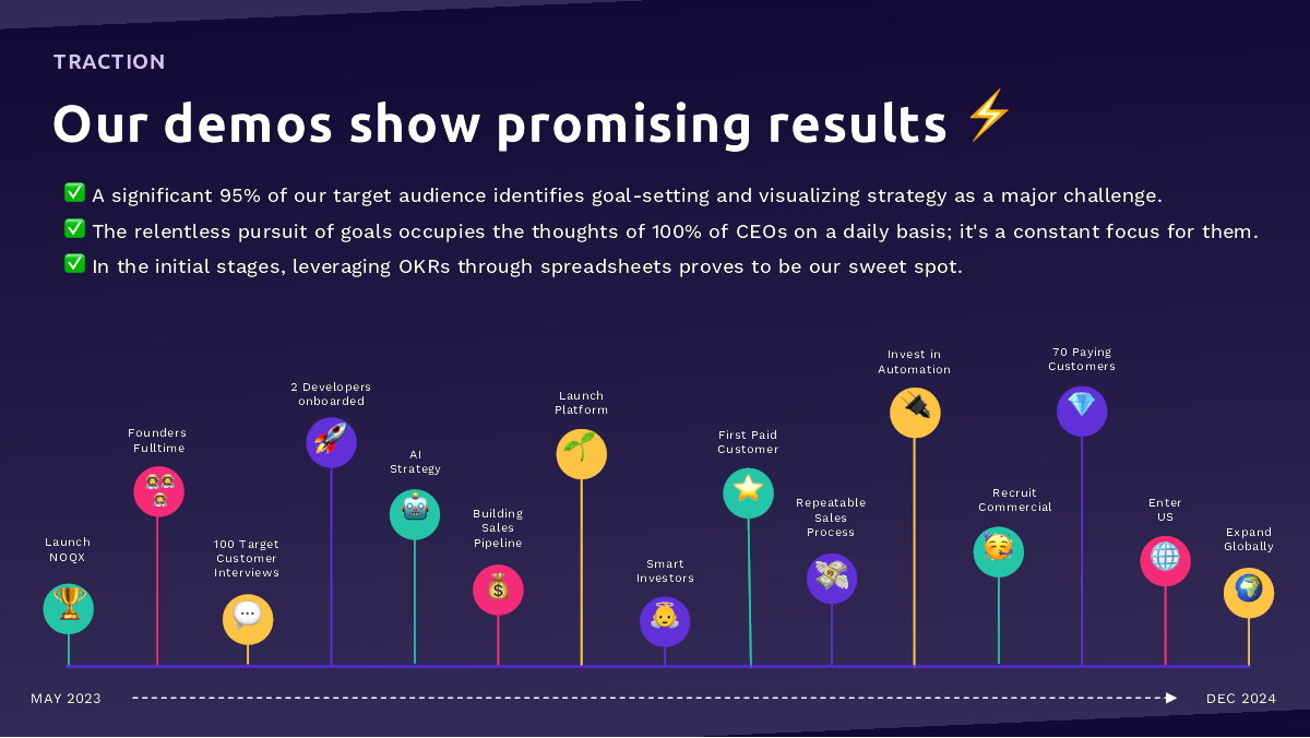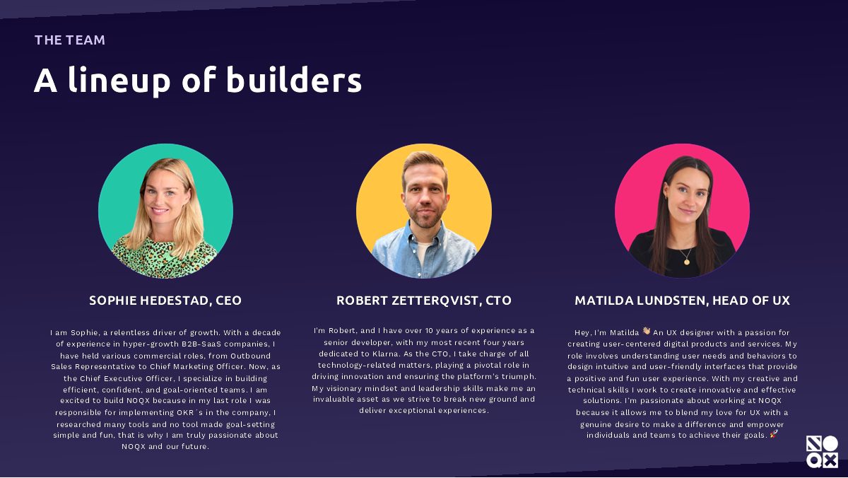 With “clarity of objectives” as its rallying cry, NOQX addresses a critical function of any business — and indeed, of pitch decks — so I was intrigued to see how well NOQX communicates this for itself.