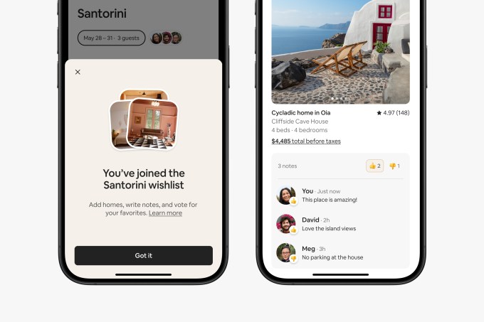 Users can now invite friends or family to a wishlist through contacts on their phone or a link. Group members can add properties to a list, leave notes about a property, or vote on them to decide on the booking.